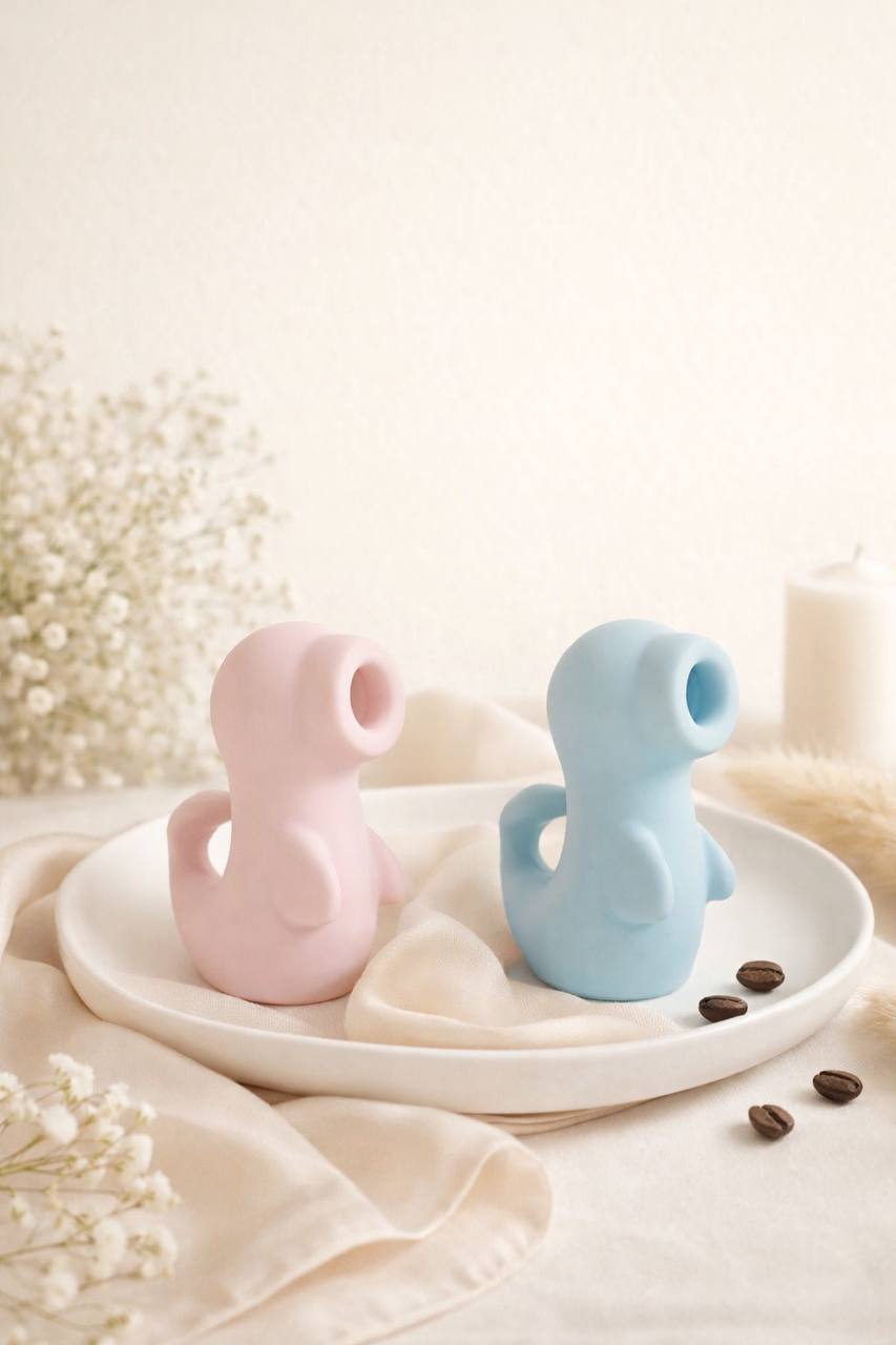 YORIA デュオ サクションは、やわらかなフォルムと遊び心のある佇まいを両立したセルフケアアイテムです。見た目の可愛らしさだけでなく、触れたくなる質感とインテリアになじむカラーリングで、日常に自然に置けるデザインに仕上げました。ギフト感のあるビジュアルで、YORIAらしいやさしさを象徴する主力ラインのひとつです。
